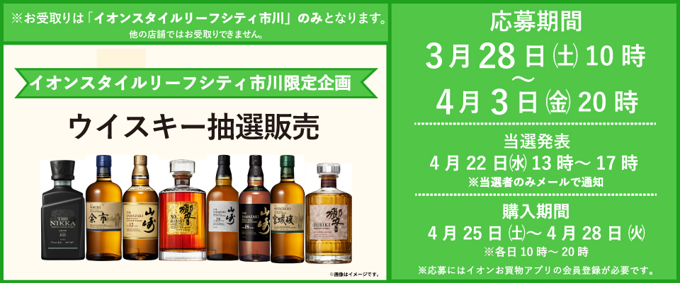 各日10:00~20:00 ・期間中にイオンスタイルリーフシティ市川で①当選メール ②イオンお買物アプリ上での会員番号 を提示③顔写真のある公的身分証をご提示の上ご購入ください。